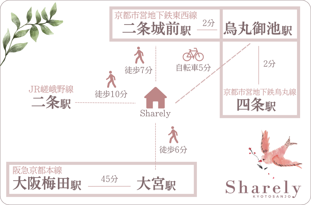 ではsharelyは?どこにあるかというと、京都市中京区という場所に立地しています。